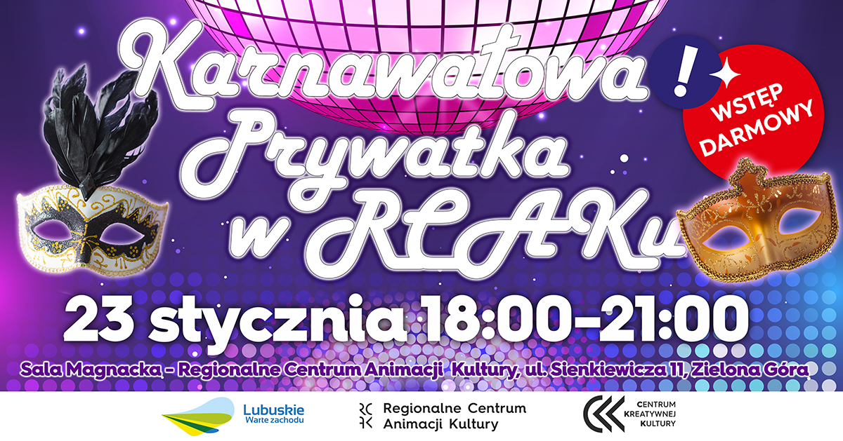 Zapraszamy na Karnawałową Prywatkę w Regionalnym Centrum Animacji Kultury!