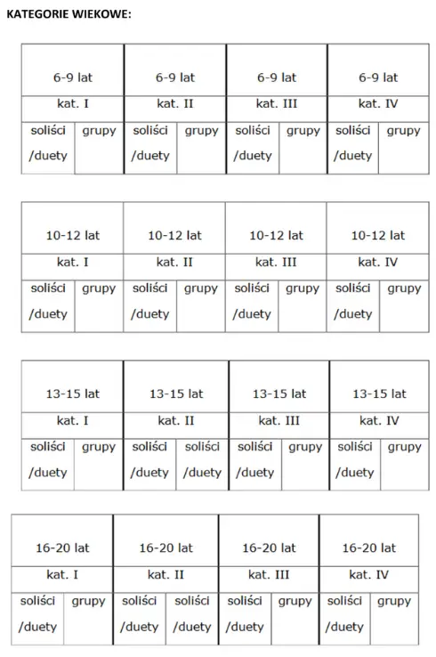 1. Soliści/duety – w podziale na kategorie wiekowe: